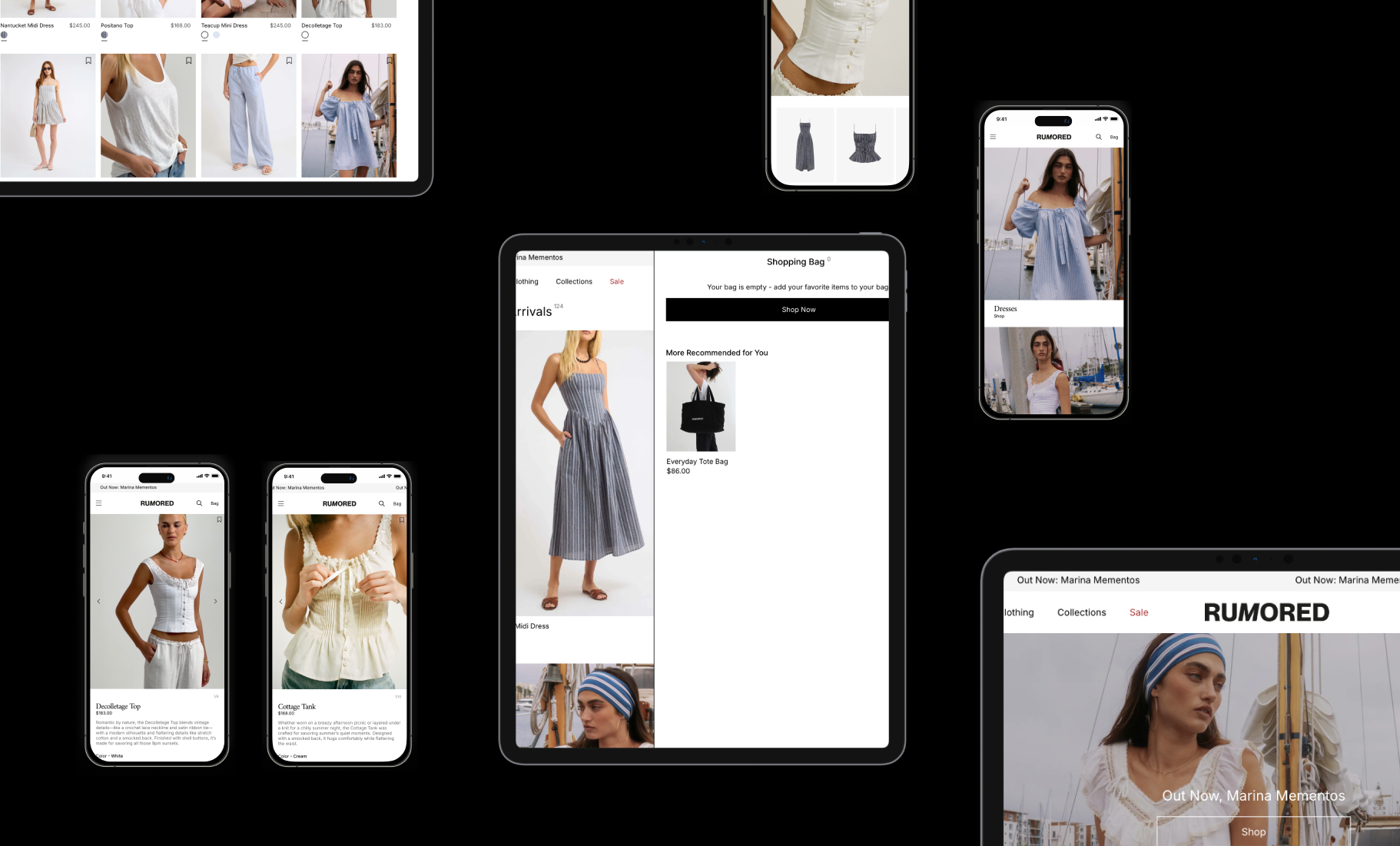 Dacey, Kelly, and Brielle reached out with a unique opportunity for collaboration in a pivotal point of the brand’s life.Rumored was looking for aid with naming, brand refresh, and later a web re-design to position these new additions with minimal disruption to their customer experience (re-naming can be disruptive— presumably so). With quick tweaks to name, MF went in to refine and re-design the logo suite for something timeless, strong, and effortless— removing the need for an annual adjustment to visuals. Moving into web, the push was to, again, refine and re-design the digital shopping experience to optimize for brand awareness (Rumored works intimately with their community, generating reviews and feedback into actionables and new releases). The partnership resulted in peak refinement, with a timeless look and an elevated digital experience.
